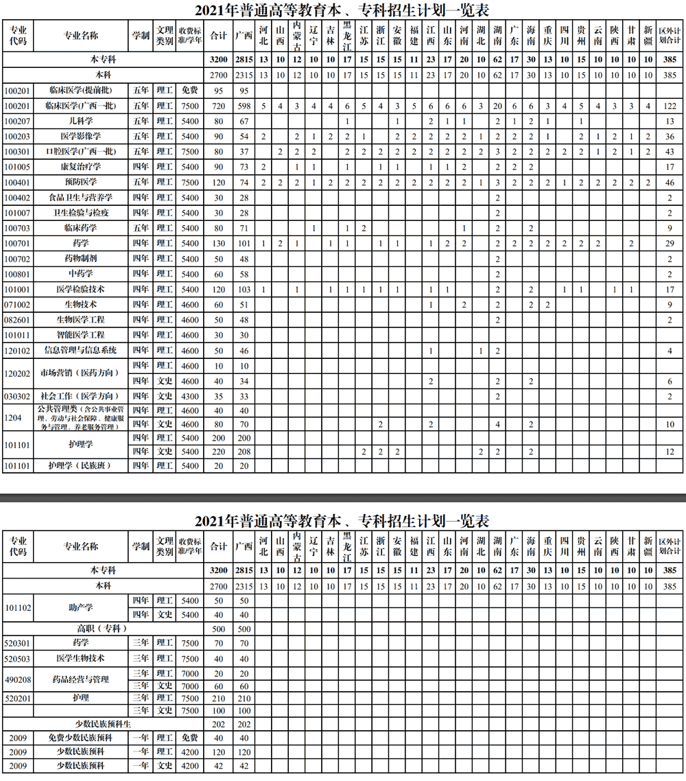 2021年桂林医学院学费:本科:4600-7500元/年;高职(专科):7000、7500元/年;少数民族预科4200元/年。