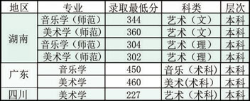 艺术类专业录取规则: (1)本、专科艺术类专业:本科音乐学专业艺术术科科目为“理工+音乐类”、“文史+音乐类”,本科美术学专业艺术术科科目为“理工+美术类”、“文史+美术类”,专科艺术设计专业艺术术科科目为“理工+美术类”、“文史+美术类”。我校没有设艺术专业校考,认可生源所在省的艺术专业招生统考成绩,对进档考生先按专业术科成绩排序,术科成绩相同按照文化总分(总成绩+照顾分)排序,若文化总分相同,则按考生位次排序,从高位次录取到低位次。如果此项与生源所在省招生政策相冲突的,以所在省文件为准。 (2)专科音乐教育、美术教育专业录取规则:该专业为高职高专提前批单独批次,执行普通高职高专文理科录取分数线。原则上对考生艺术术科科目不限,但音乐教育专业优先录取有音乐类科目成绩的考生,美术教育专业优先录取有美术类科目成绩的考生。录取规则为:考生文化总分(总成绩+照顾分)上线的情况下,对进档考生以艺术术科成绩(音乐类、美术类成绩)排序,从高分到低分依次录取;若艺术术科成绩(音乐类、美术类成绩)同分,则看文化总分成绩,文化总分高的先录取,若文化总分相同,则看考生位次排序,位次排在前的先录取;若计划未完成的情况下,则看有其他艺术术科成绩(非音乐类、美术类成绩)的考生,按文化总分成绩排序,文化总分高的先录取,若文化总分相同,则看考生位次排序,位次排在前的先录取;若计划还是未完成的情况下,可录取无艺术术科成绩的考生,以文化总分(总成绩+照顾分)从高到低录取,若文化总分相同,则按位次排序,从高位次到低位次进行录取。