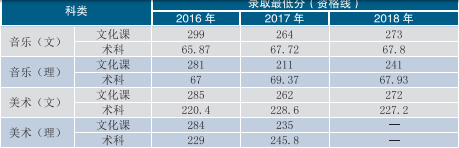 宁夏大学新华学院2016-2018年宁夏区内艺术本科专业录取线