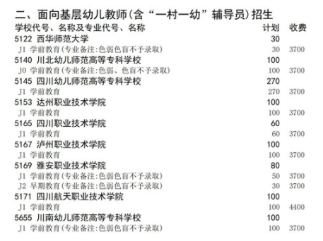 四川2021高职扩招报名即将开始,在岗基层幼儿教师(含“一村一幼”辅导员)只能填报面向本类别的招生高校和专业,下面是招生计划相关内容,来看一下!
