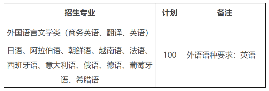 我校2022年外语类保送生招生计划为100人左右(根据生源质量、报考数量和测试成绩等适当调整),招生专业如下: