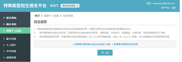 请牢记自己的用户名和密码,注册好后登录系统,选择保送生进入报名