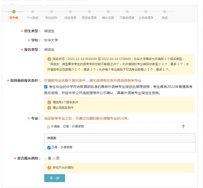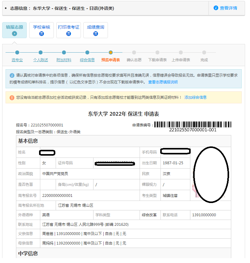 下一步预览报名表后确认志愿,请仔细核对每一项填报信息是否真实有效,一旦确认将不能再次修改。