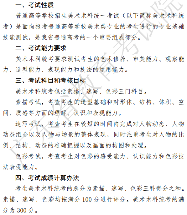 广东省2021年普通高等学校招生统一考试美术术科考试说明发布,包括考试科目和考核目标、考试成绩计算办法等,具体如下: