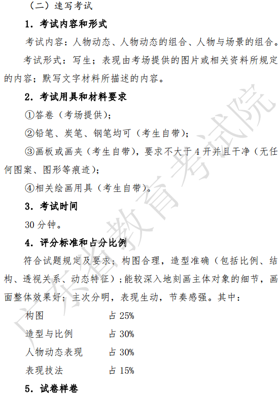广东美术术科考试说明