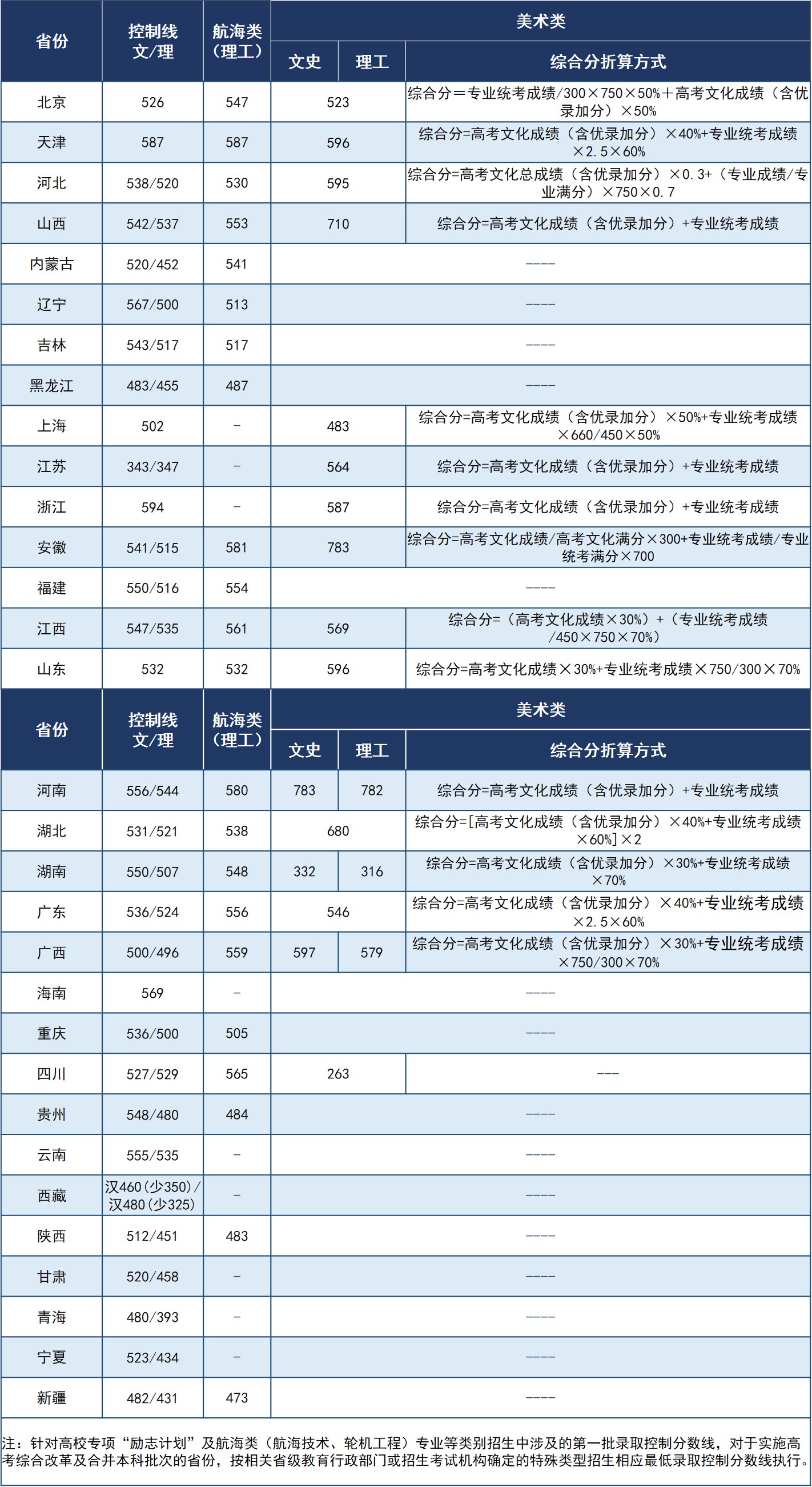 1.武汉理工大学2020年航海类、美术类录取分数线