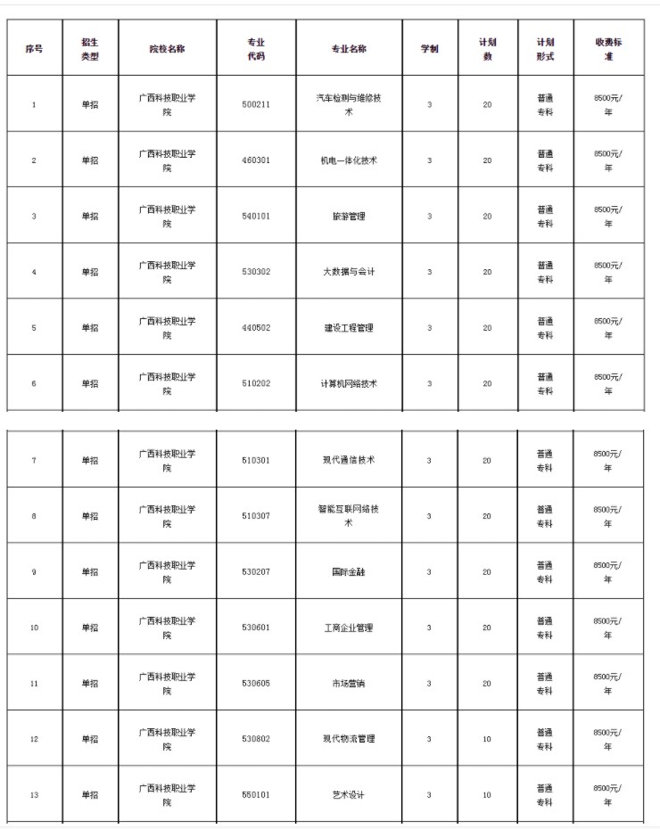 2022广西科技职业学院高职单招招生专业有汽车检测与维修技术、机电一体化技术、旅游管理、大数据与会计、建设工程管理等。