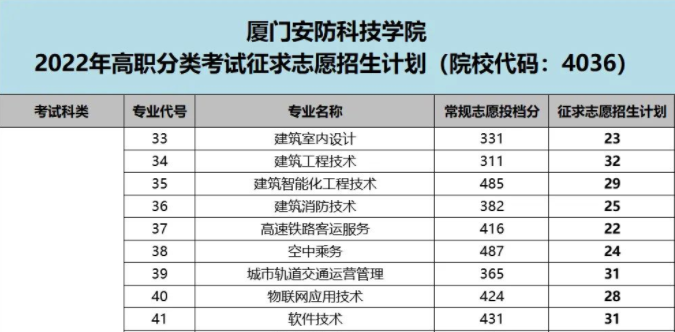 2022厦门安防科技职业学院录取投档分数线及征求计划