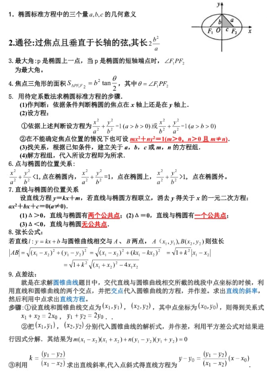 椭圆的焦准距 :椭圆的焦点与其相应准线(如焦点(c,0)与准线x=+a^2/C)的`距离,数值=b^2/c