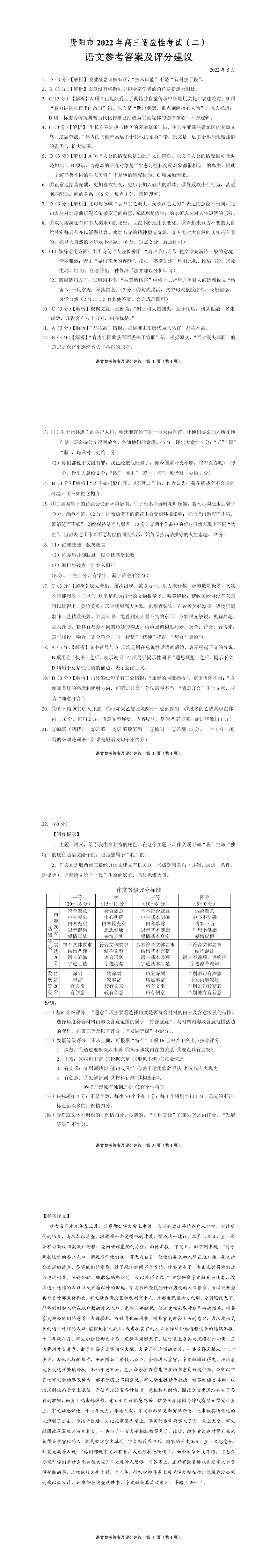 二模:贵阳市2022年高三适应性考试(二)语文参考答案及评分建议