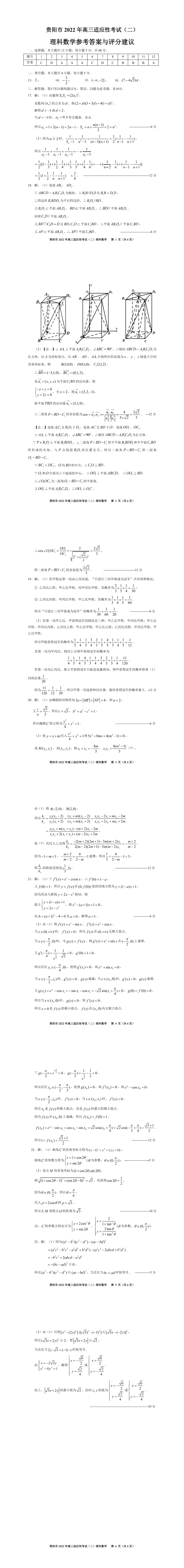 二模:贵阳市2022年高三适应性考试(二)理科数学参考答案及评分建议