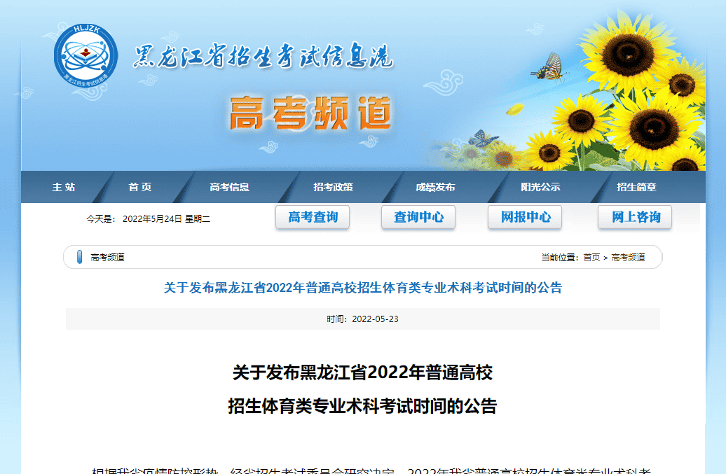 黑龙江省2022年普通高校招生体育类专业术科考试时间
