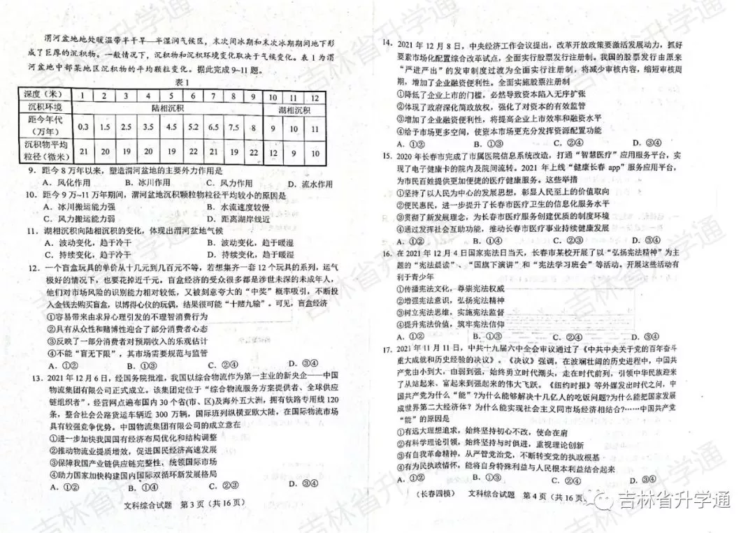 2022届长春市高三四模文综试题及答案