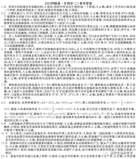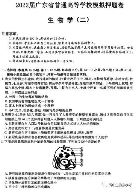 广东省2022届高三下学期二模押题卷生物试题及答案解析