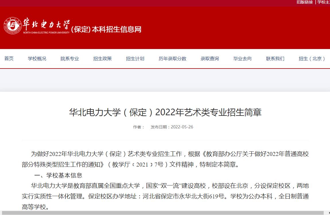 为做好2022年华北电力大学(保定)艺术类专业招生工作,根据《教育部办公厅关于做好2022年普通高校部分特殊类型招生工作的通知》(教学厅﹝2021﹞7号)文件精神,特制定本简章。