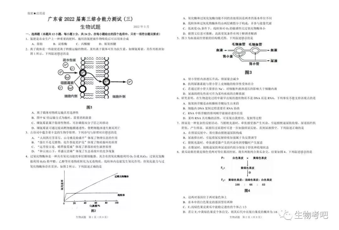 2022届广东省高三综合能力测试(三)生物试卷及答案