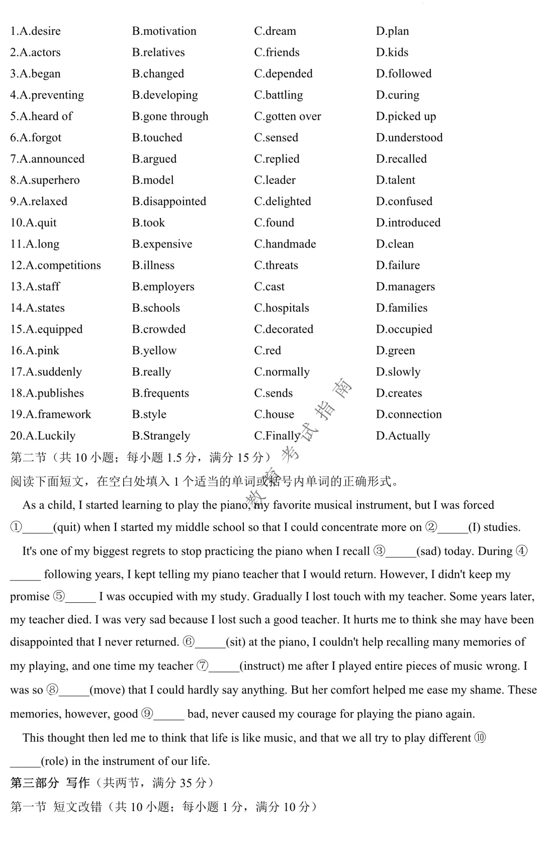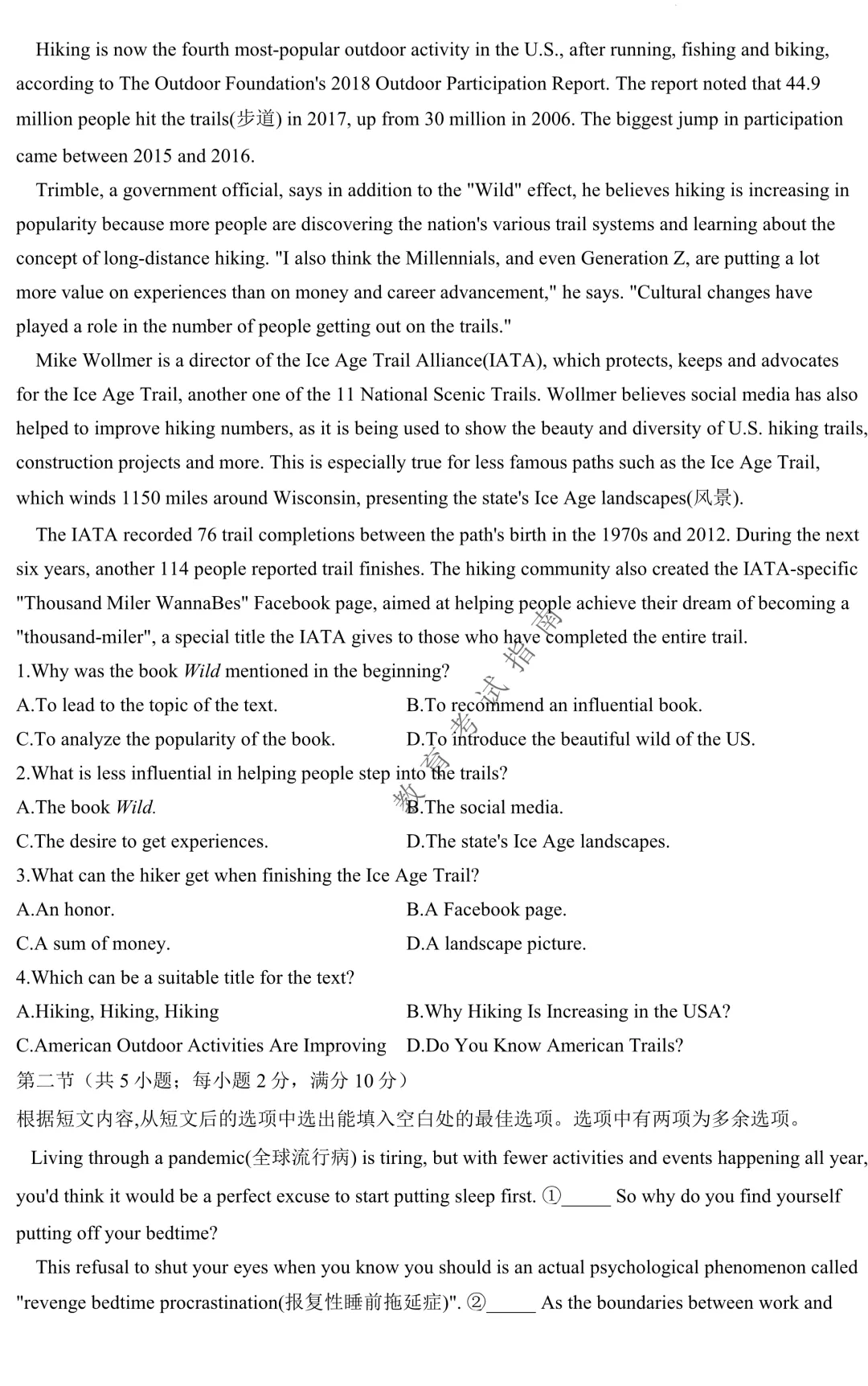 2022年新高考II卷(新高考二卷)英语试卷真题与答案解析