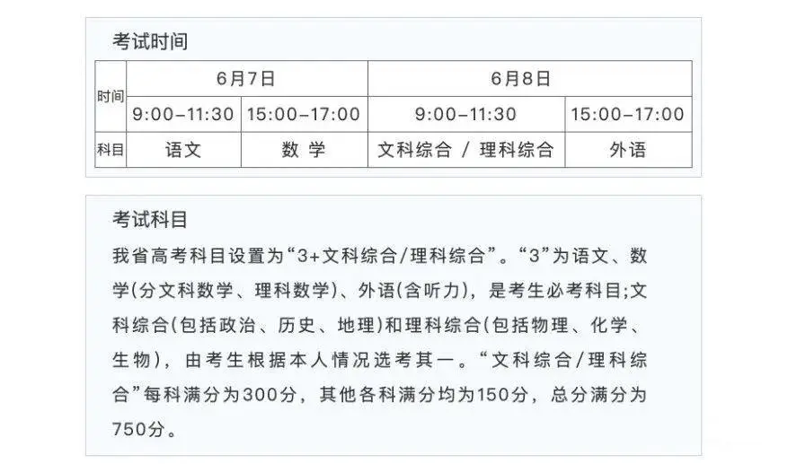 2022河南高考各科目安排时间表