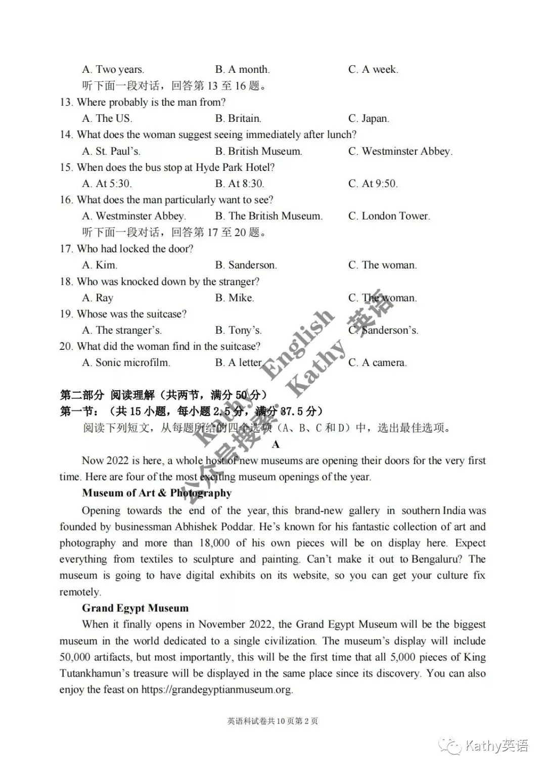 2021年全国乙卷英语真题答案解析