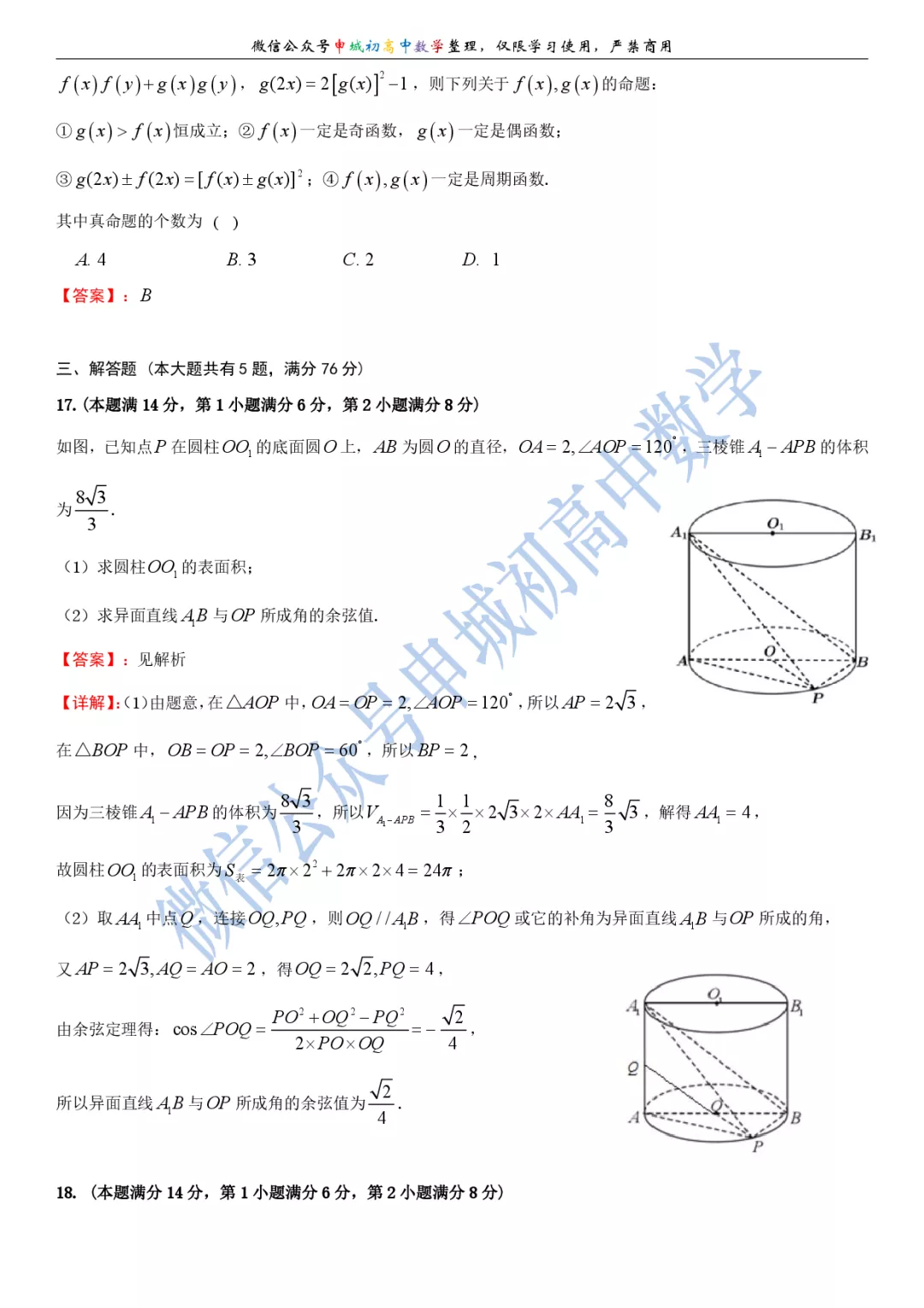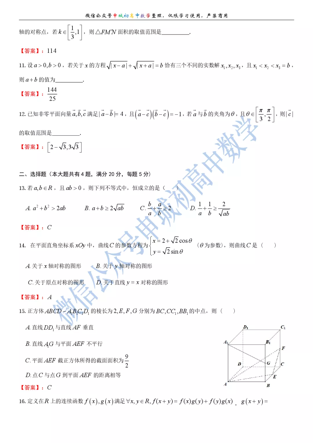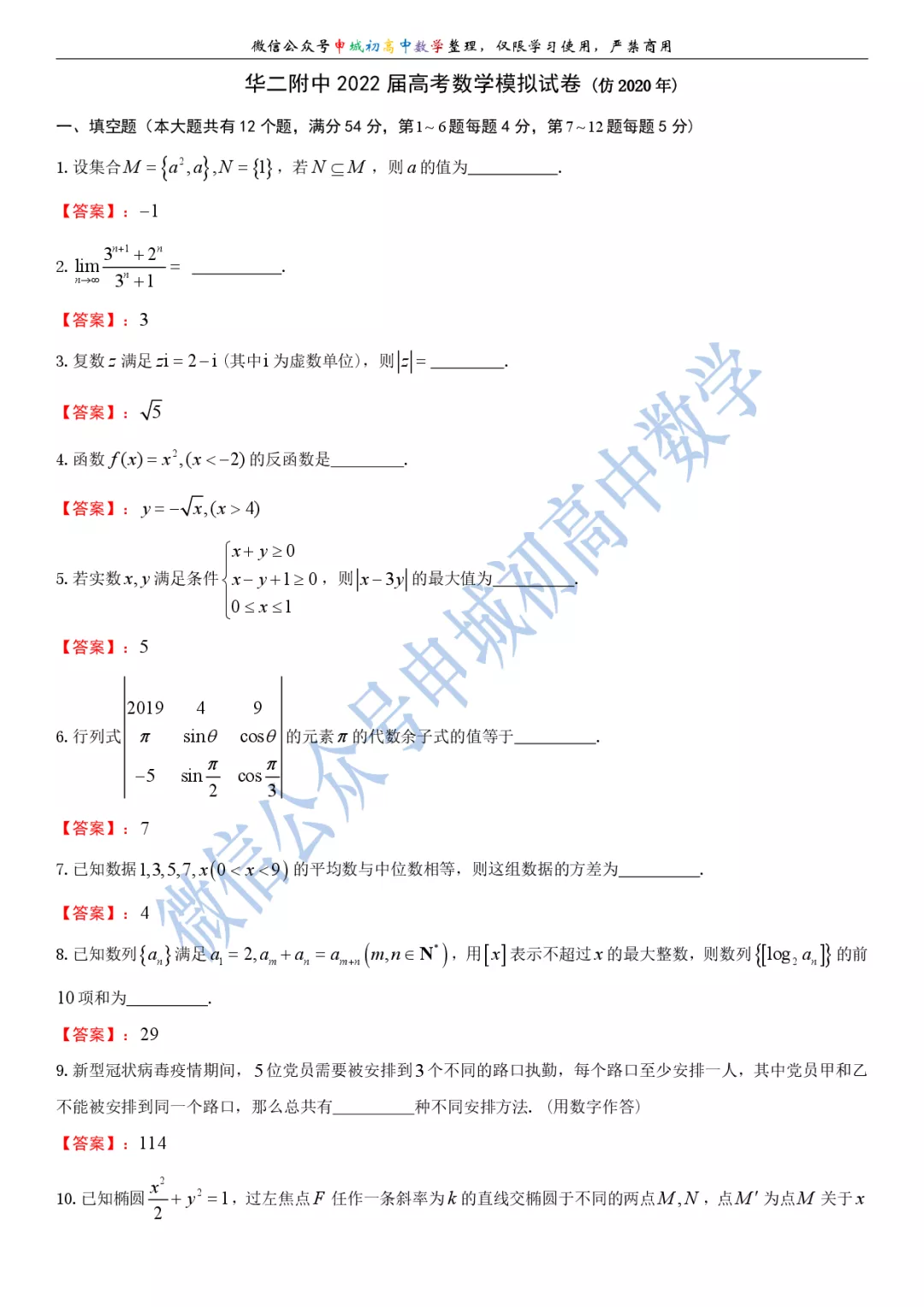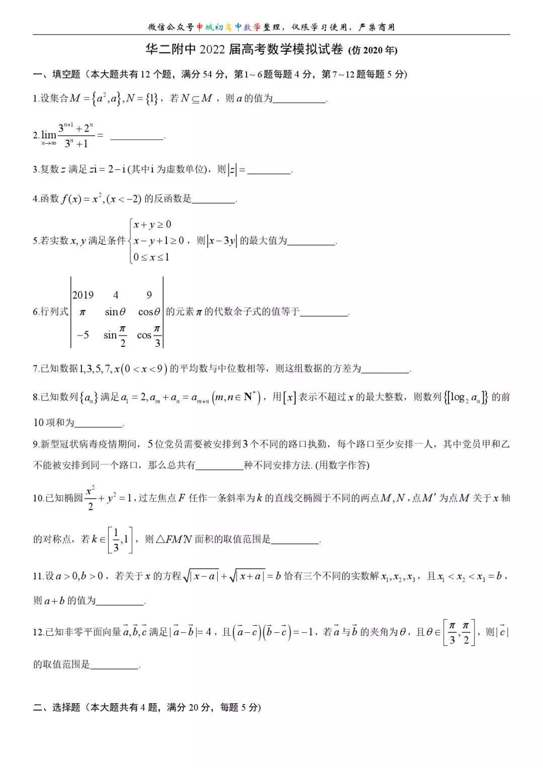 上海华二附中2022届高考数学模拟试卷及答案解析