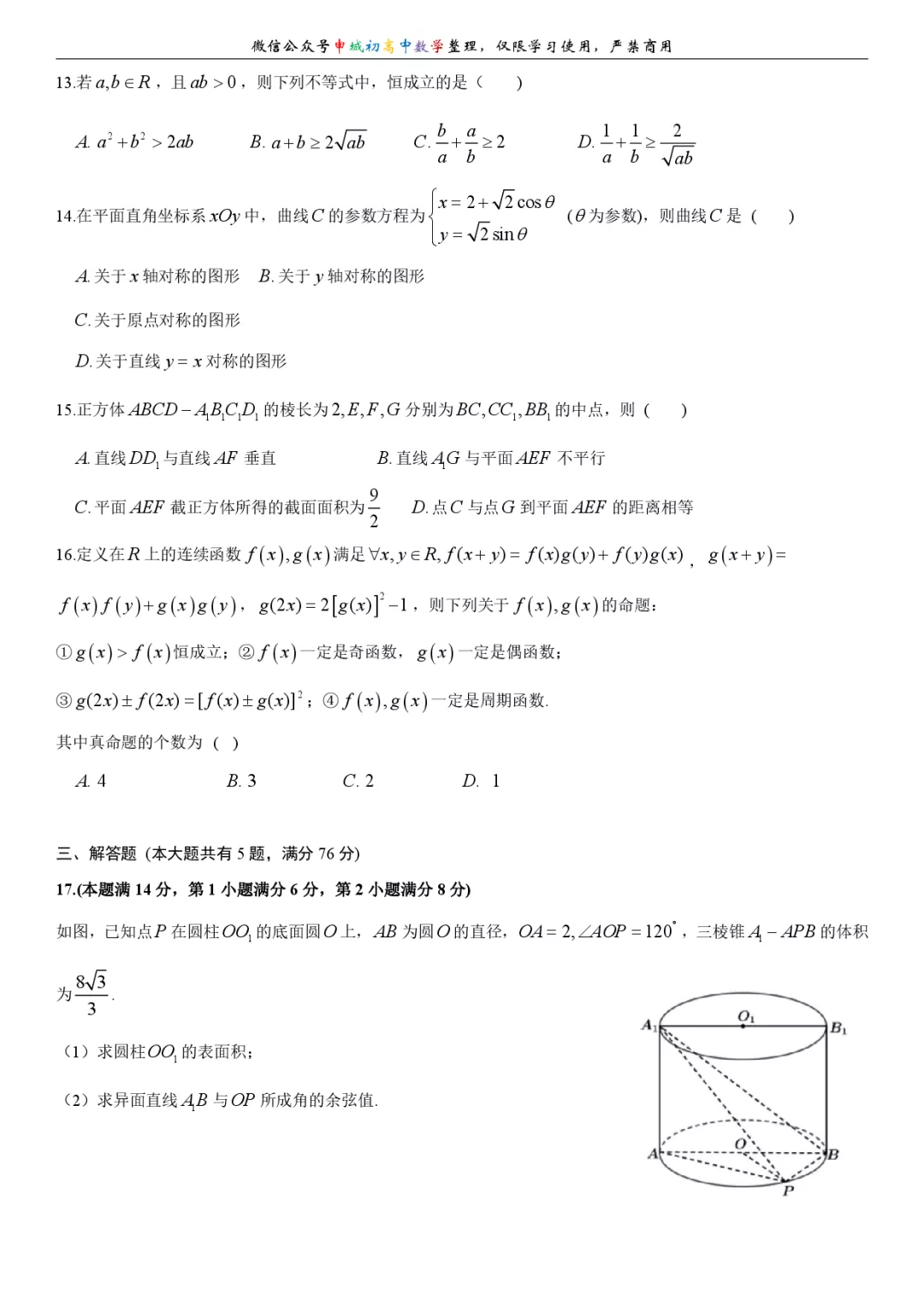 上海交大附中2023-2024学年高三开学摸底考数学试题及答案解析