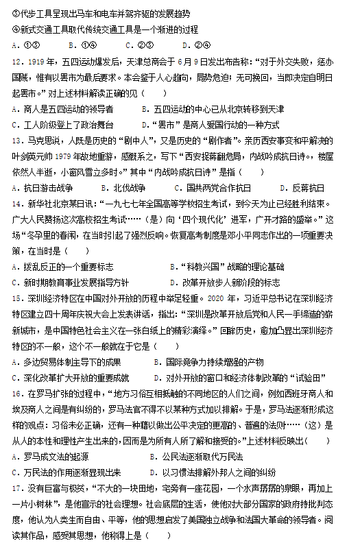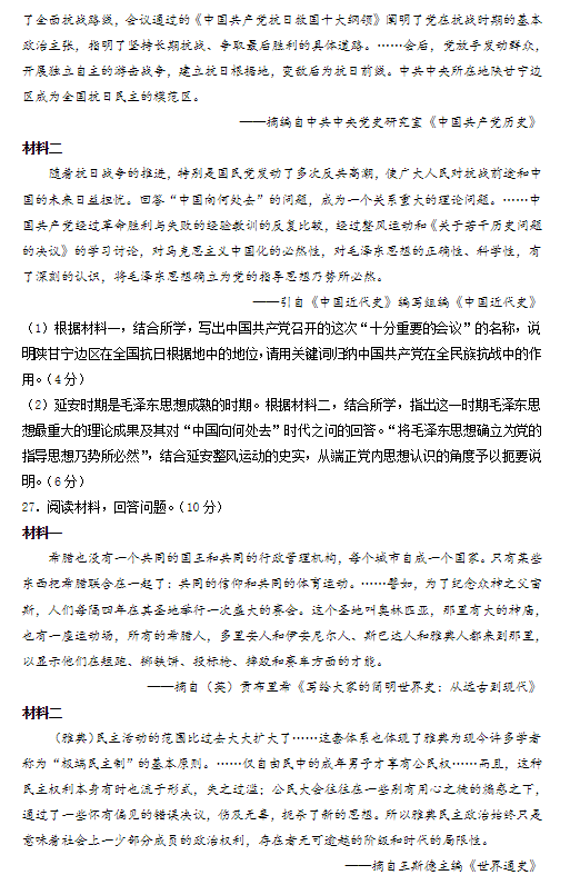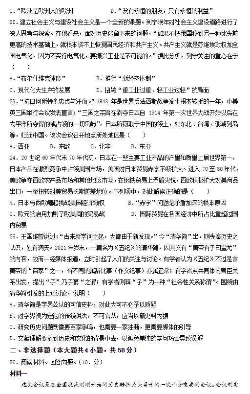 2022年浙江高考历史试卷真题及答案解析(已更新)