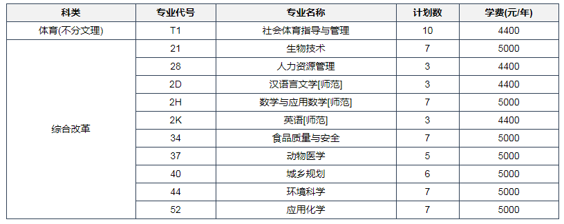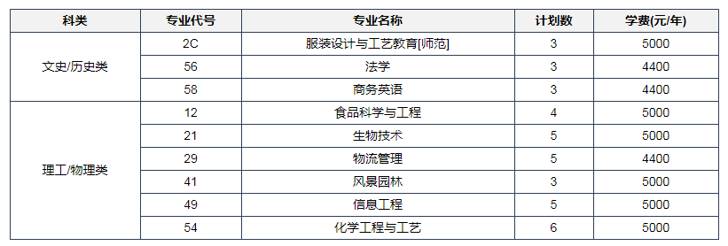 2022年河南科技学院在江苏招生计划中教育学专业招生3人、英语专业招生3人,在浙江招生计划中生物工程专业招生6人、法学专业招生3人,在江西招生计划中法学专业招生3人、生物技术专业招生5人。