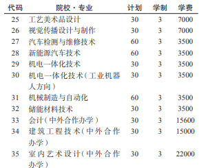 注:第一列为代码,第二列为院校专业,第三列为计划,第四列为学制,第五列为学费。
