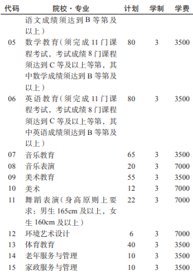 注:第一列为代码,第二列为院校专业,第三列为计划,第四列为学制,第五列为学费。