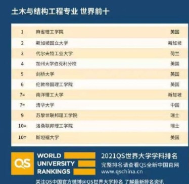 中国大陆共有88所大学的731个学科专业上榜,126个学科排名跻身世界前50名。今年,大陆排名最高的两个专业分别是清华大学的土木与结构工程和中国农业大学的农林专业,全球排名均为第7。