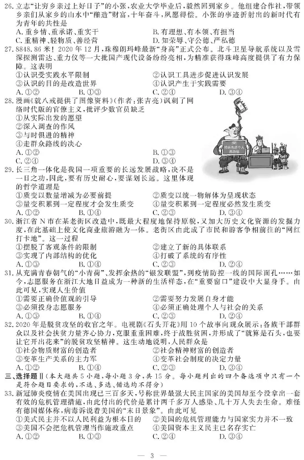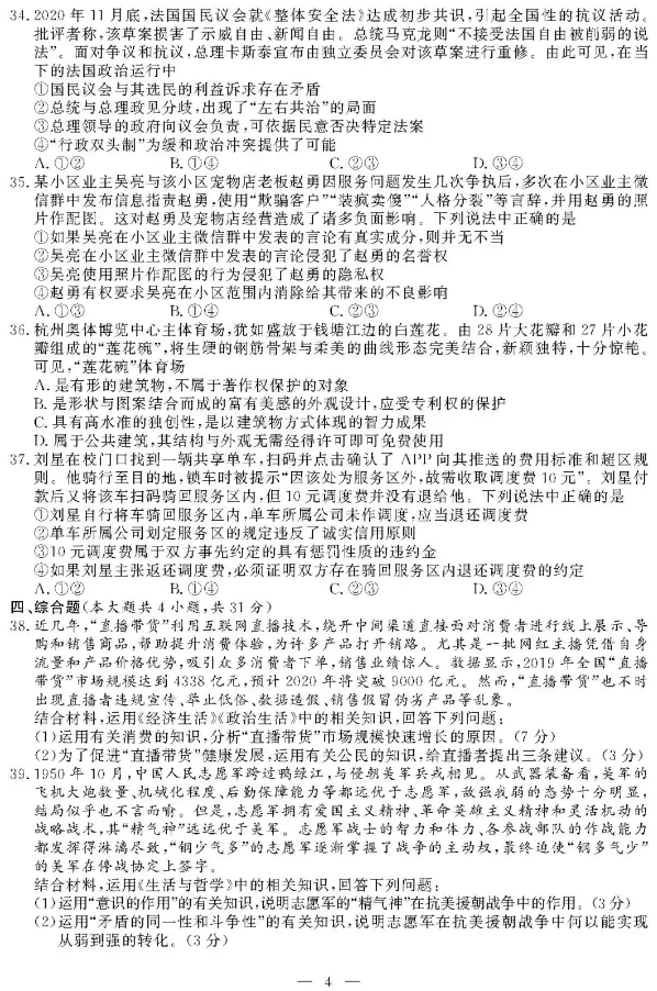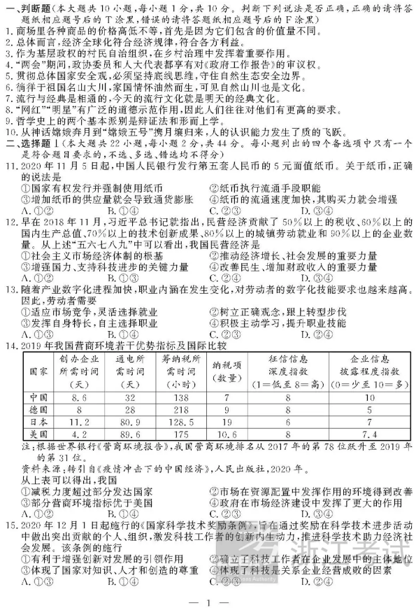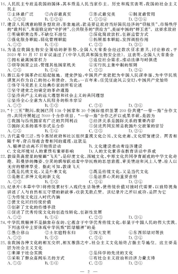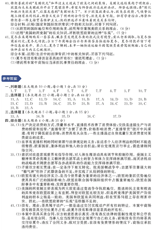 2021年1月浙江选考政治试题及答案 时间:2021-01-09 08:52 文综试题 参加本次选考科目考试的同学看过来,2021年1月选考和英语科目试题及参考答案出来啦!快来对对看。选考政治试题及答案
