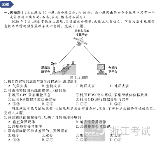 2021年1月浙江选考地理试题及答案