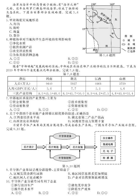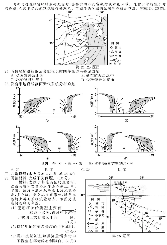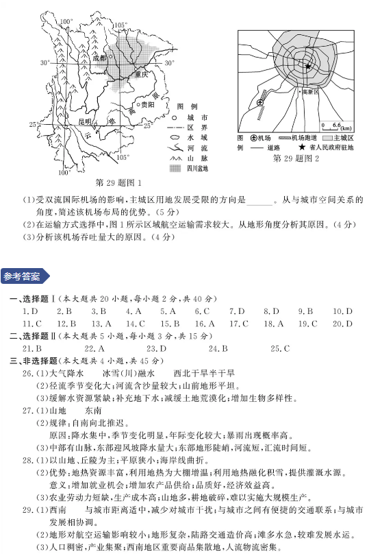选考地理试题及答案