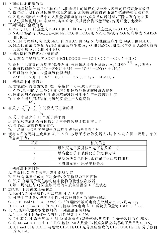 浙江强基联盟2024年10月高三联考化学试题及答案