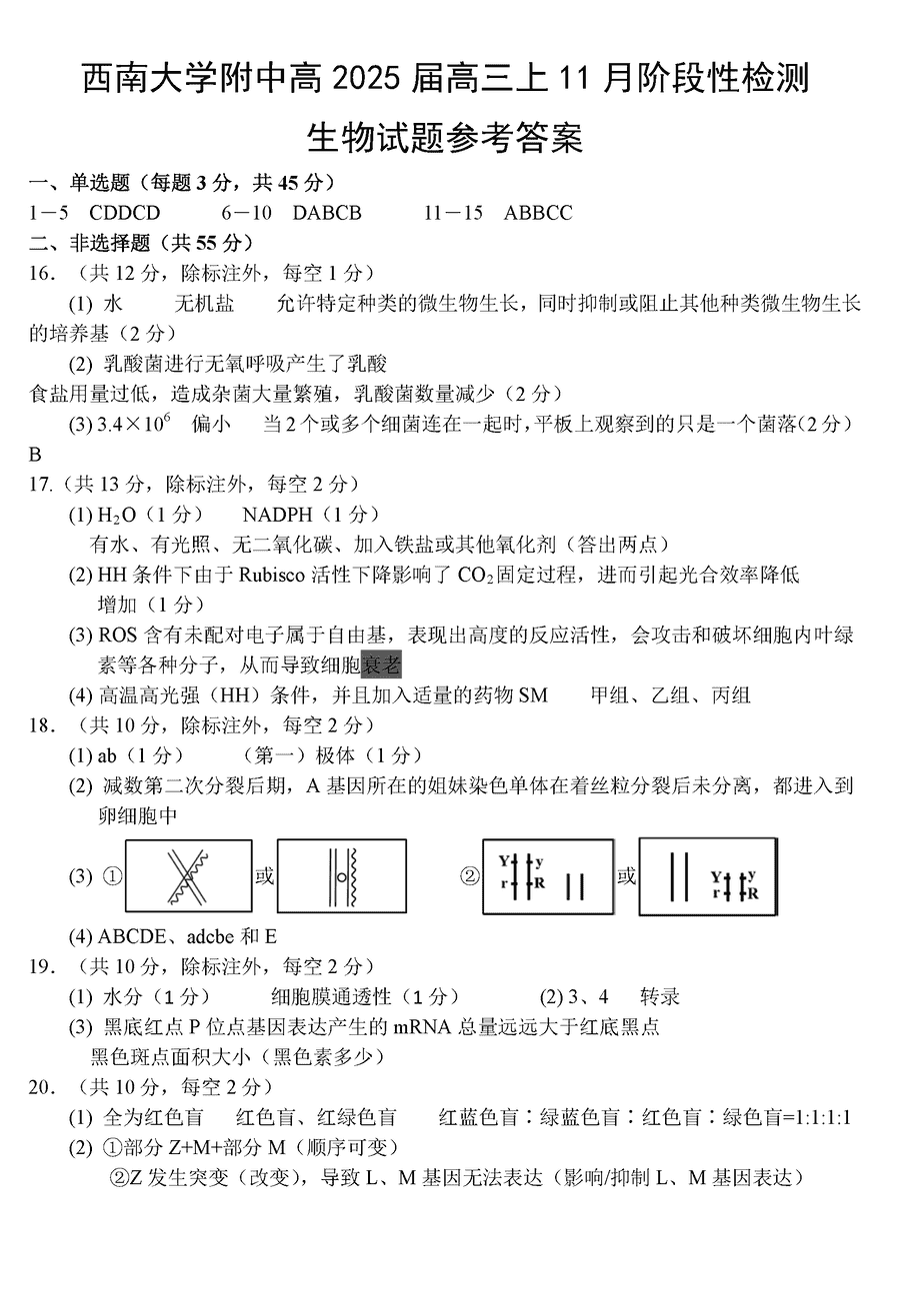 重庆西南大学附中2025届高三上11月阶段性检测生物考试已于近日开考,为方便考生考后及时查看考试情况,查漏补缺、弥补不足,本文整理了试题答案解析相关信息!