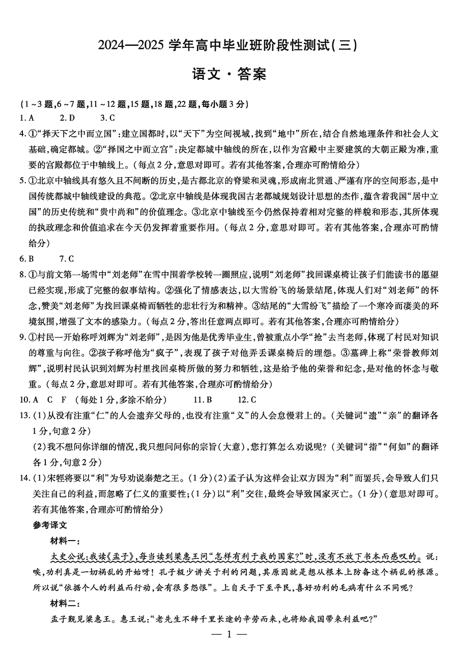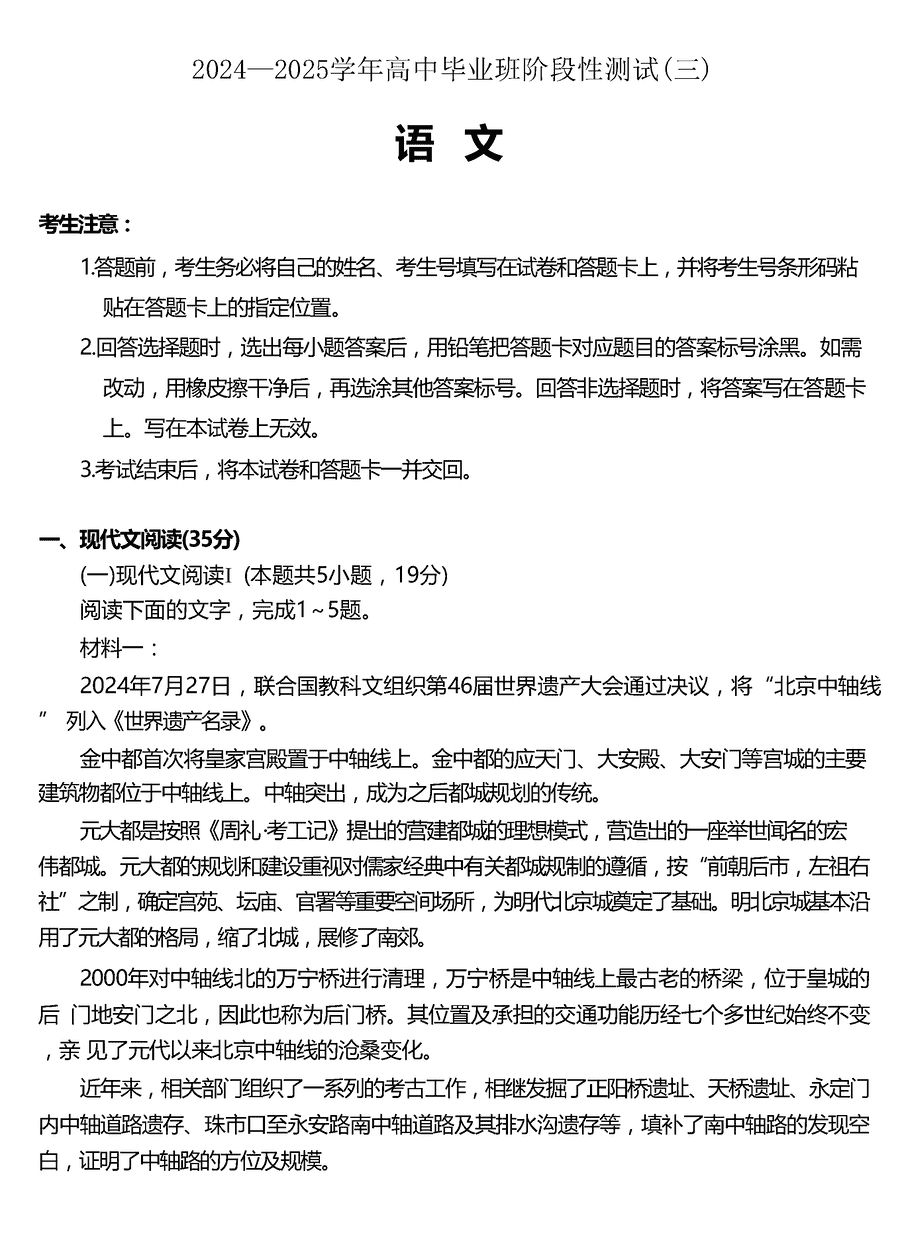 2025届河南天一大联考高三阶段性检测(三)语文试题及答案