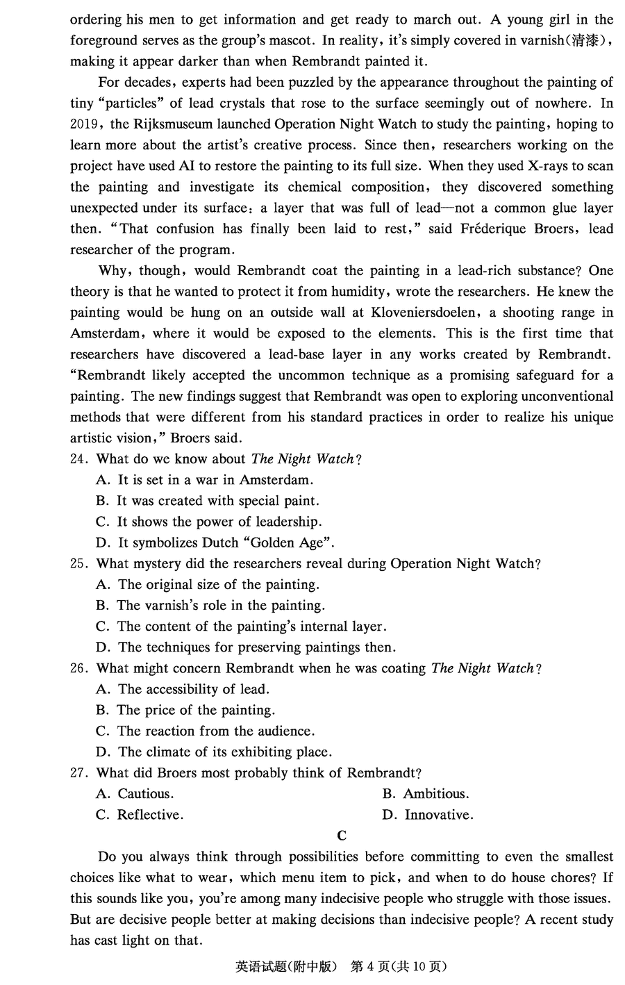 2025届湖南师大附中高三上学期月考卷(三)英语试题及答案