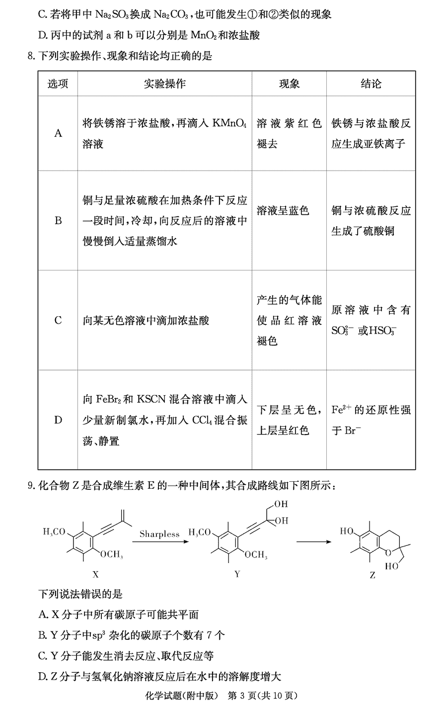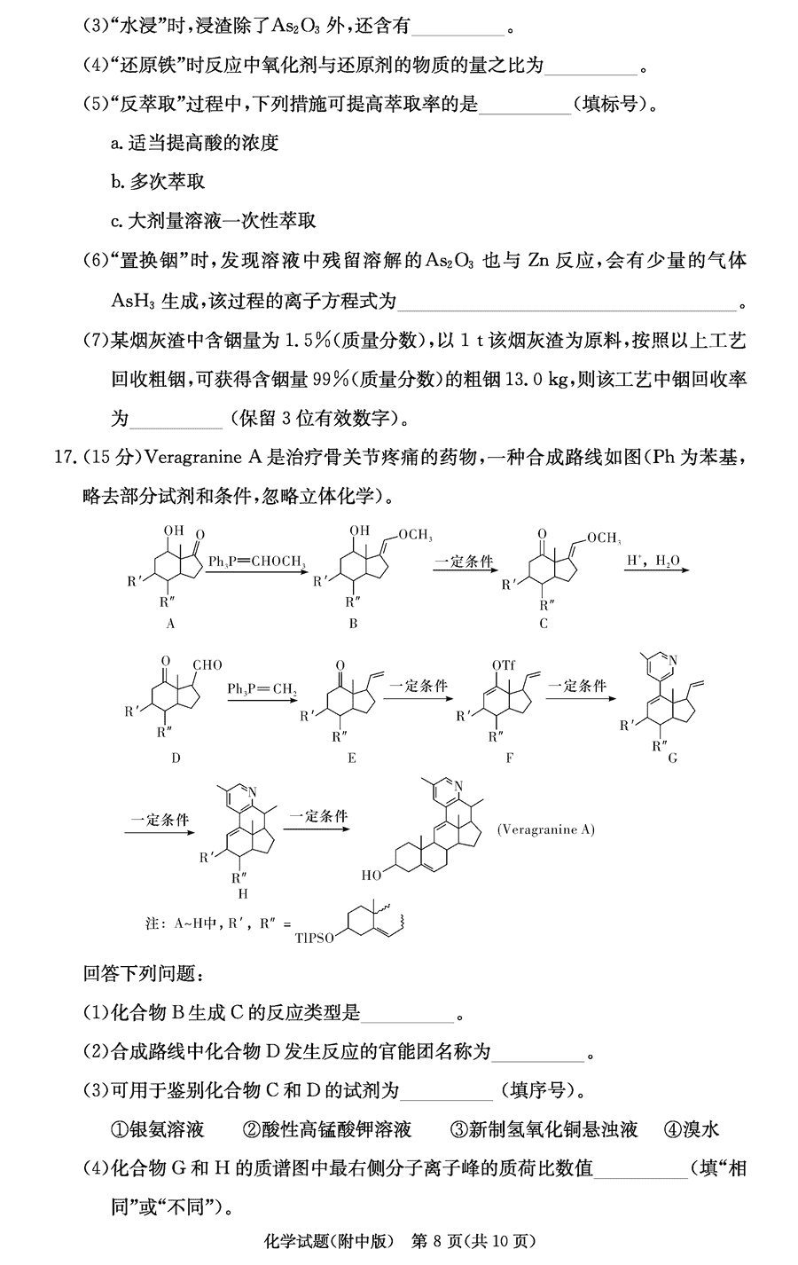 2025届湖南师大附中高三上学期月考卷(三)化学考试已于近日开考,为方便考生考后及时查看考试情况,查漏补缺、弥补不足,本文整理了试题答案解析相关信息!