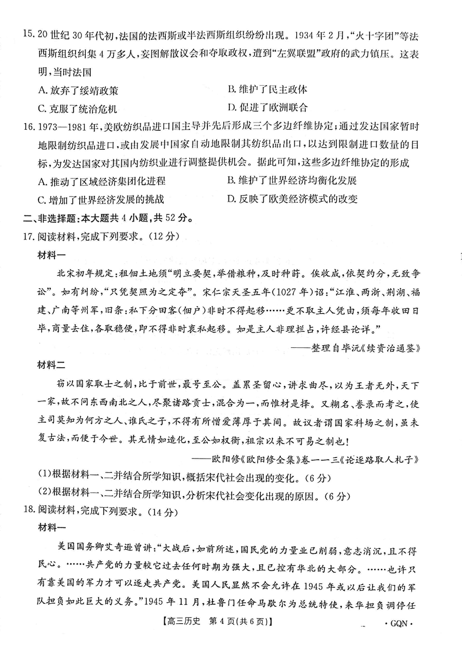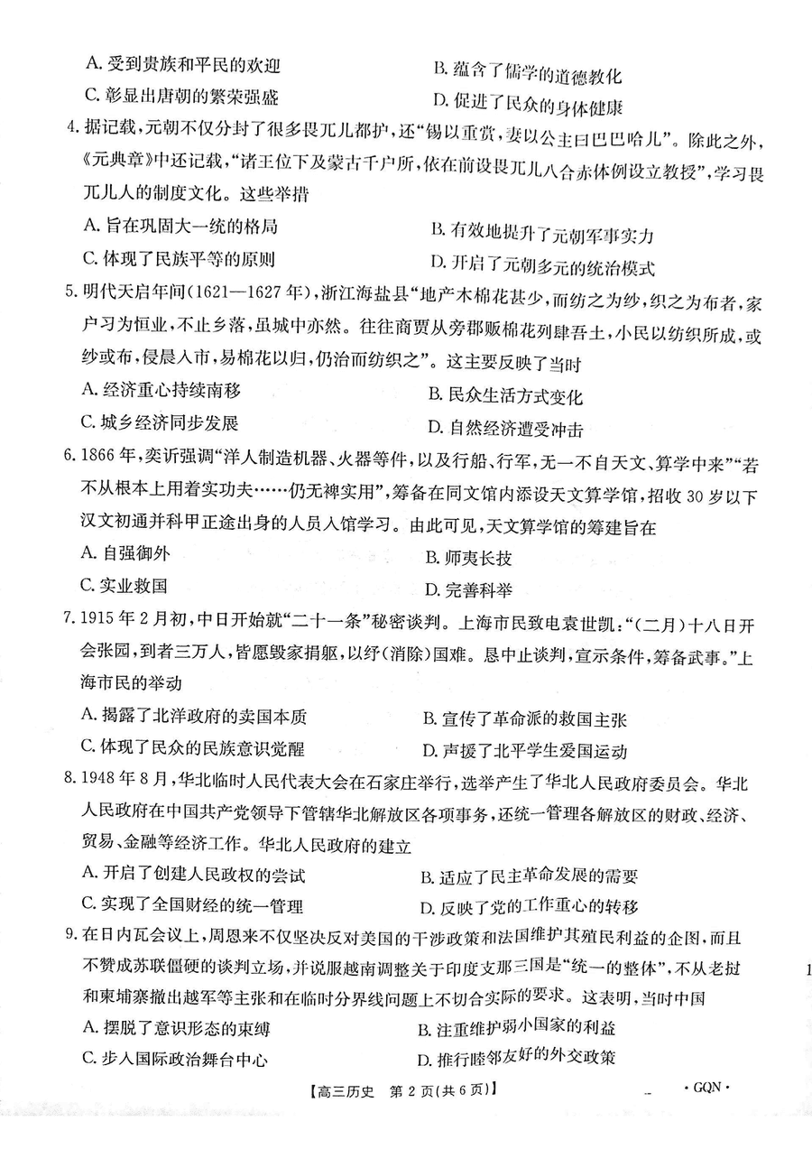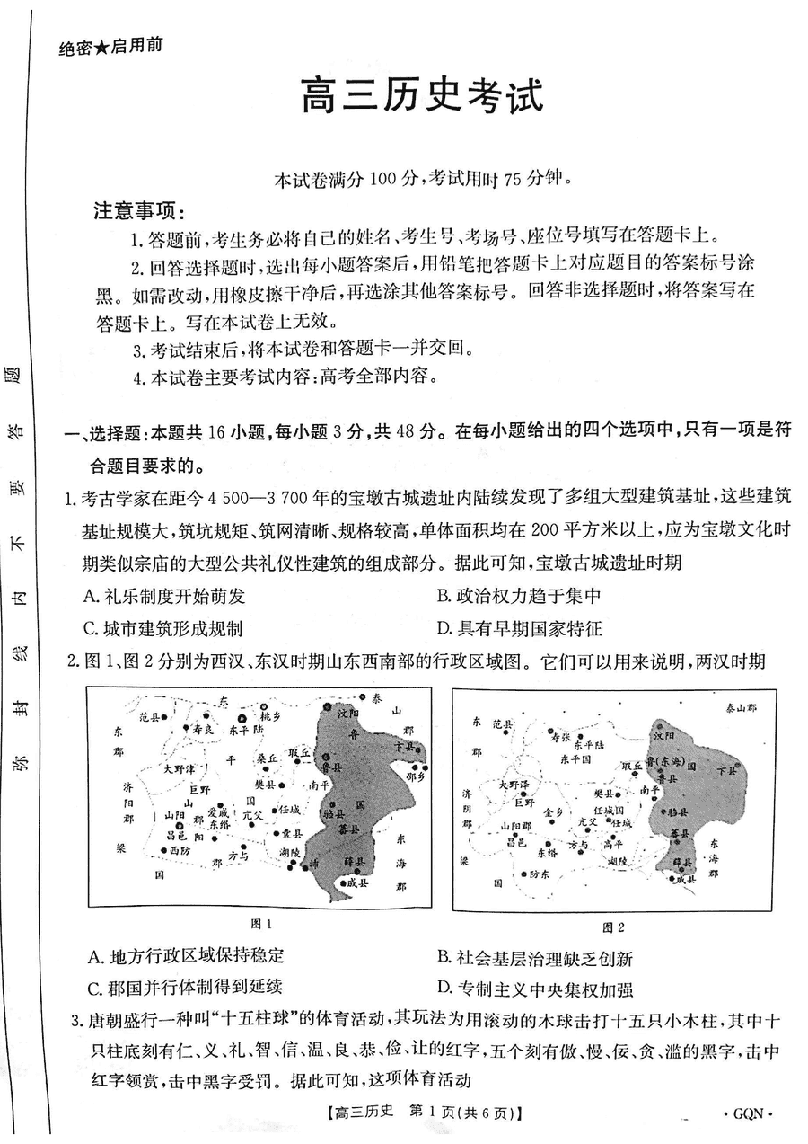 甘肃/青海/宁夏金太阳百校联考2025届高三11月联考历史试题及答案