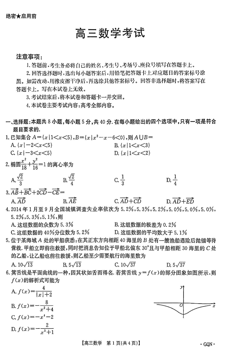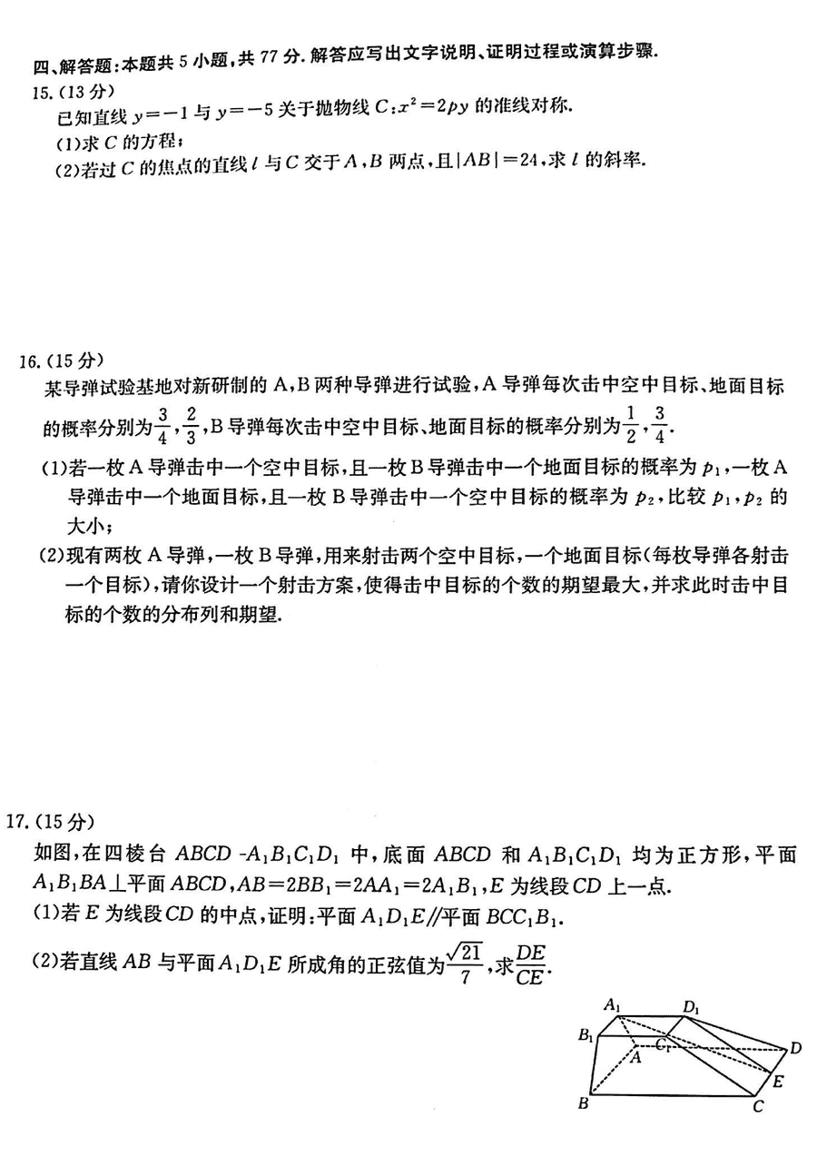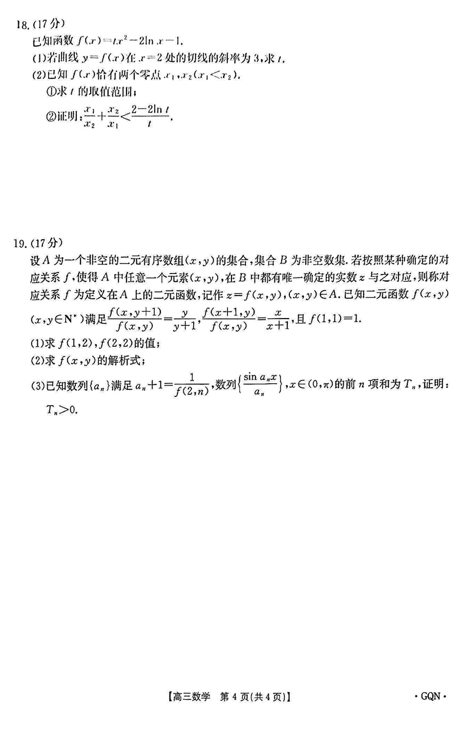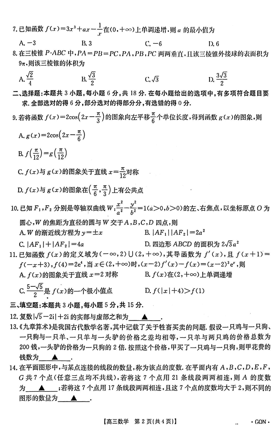 甘肃/青海/宁夏金太阳百校联考2025届高三11月联考数学试题及答案