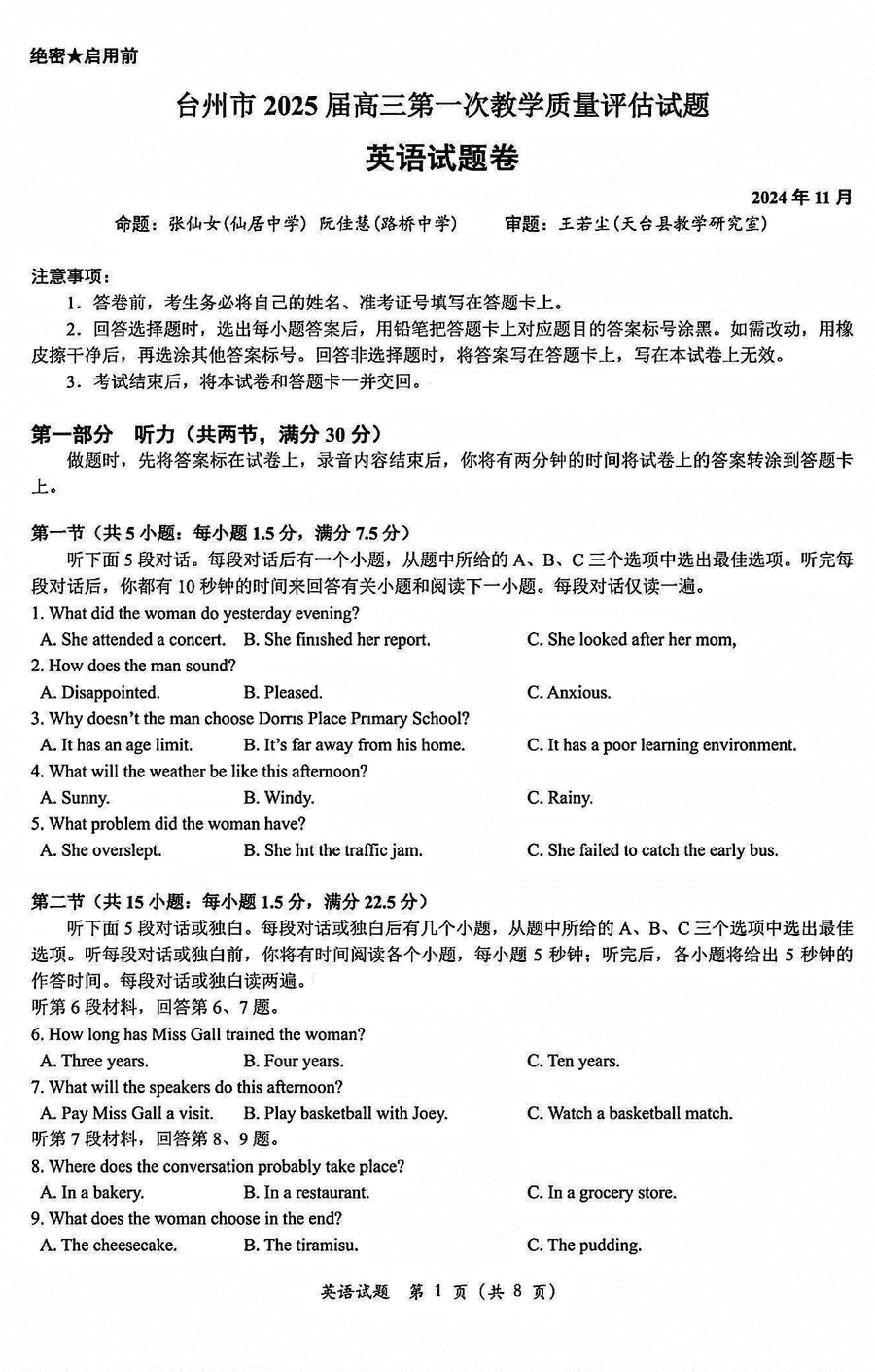 台州市2025届高三第一次教学质量评估英语试题及答案 时间:2024-11-17 01:58 浙江 英语试题 2025届江西省九校联考高三上学期11月期中英语考试已于近日开考,为方便考生考后及时查看考试情况,查漏补缺、弥补不足,本文整理了试题答案解析相关信息! 汇总:台州市2025届高三第一次教学质量评估试题及答案汇总 英语试题及答案解析