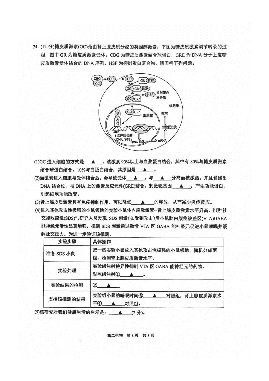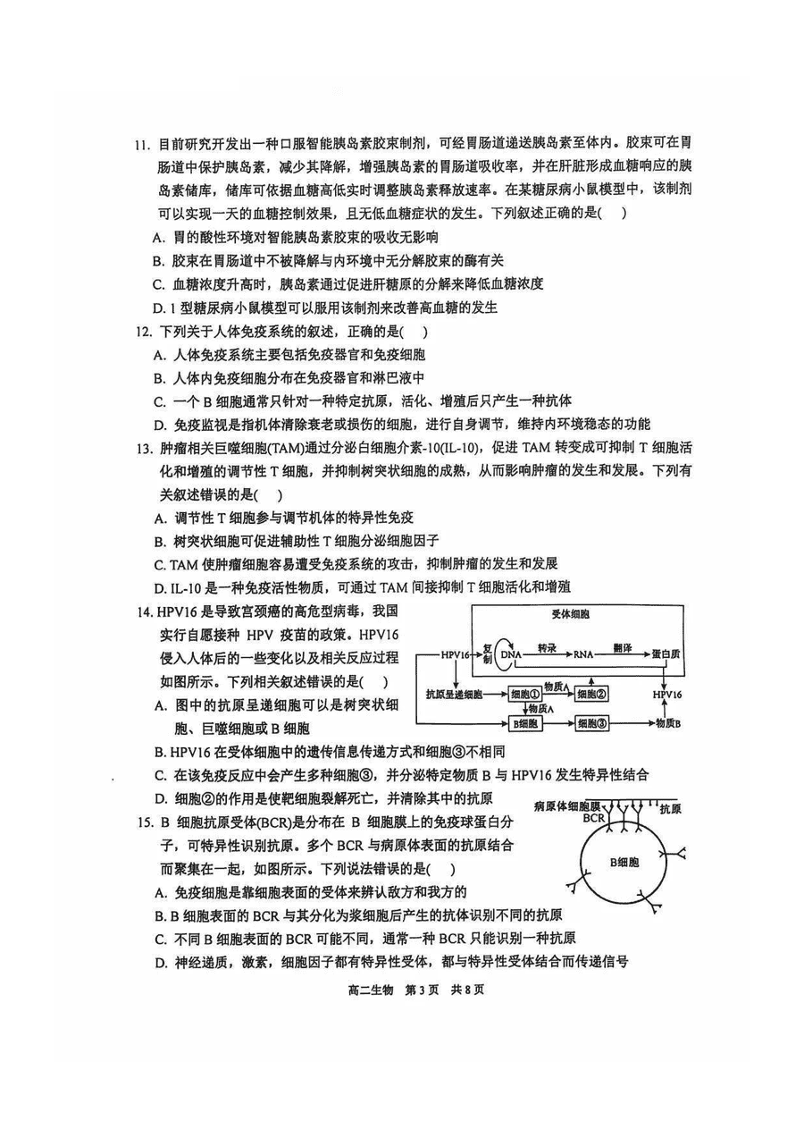 江苏苏州2024-2025学年上学期高二期中生物试题及答案