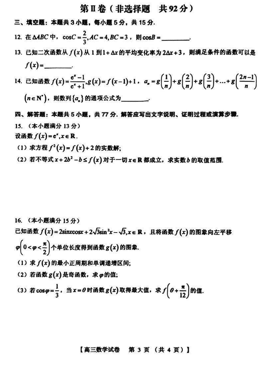 河南三门峡期中2024-2025学年高三上学期第三阶段考数学考试已于近日开考,为方便考生考后及时查看考试情况,查漏补缺、弥补不足,本文整理了试题答案解析相关信息!