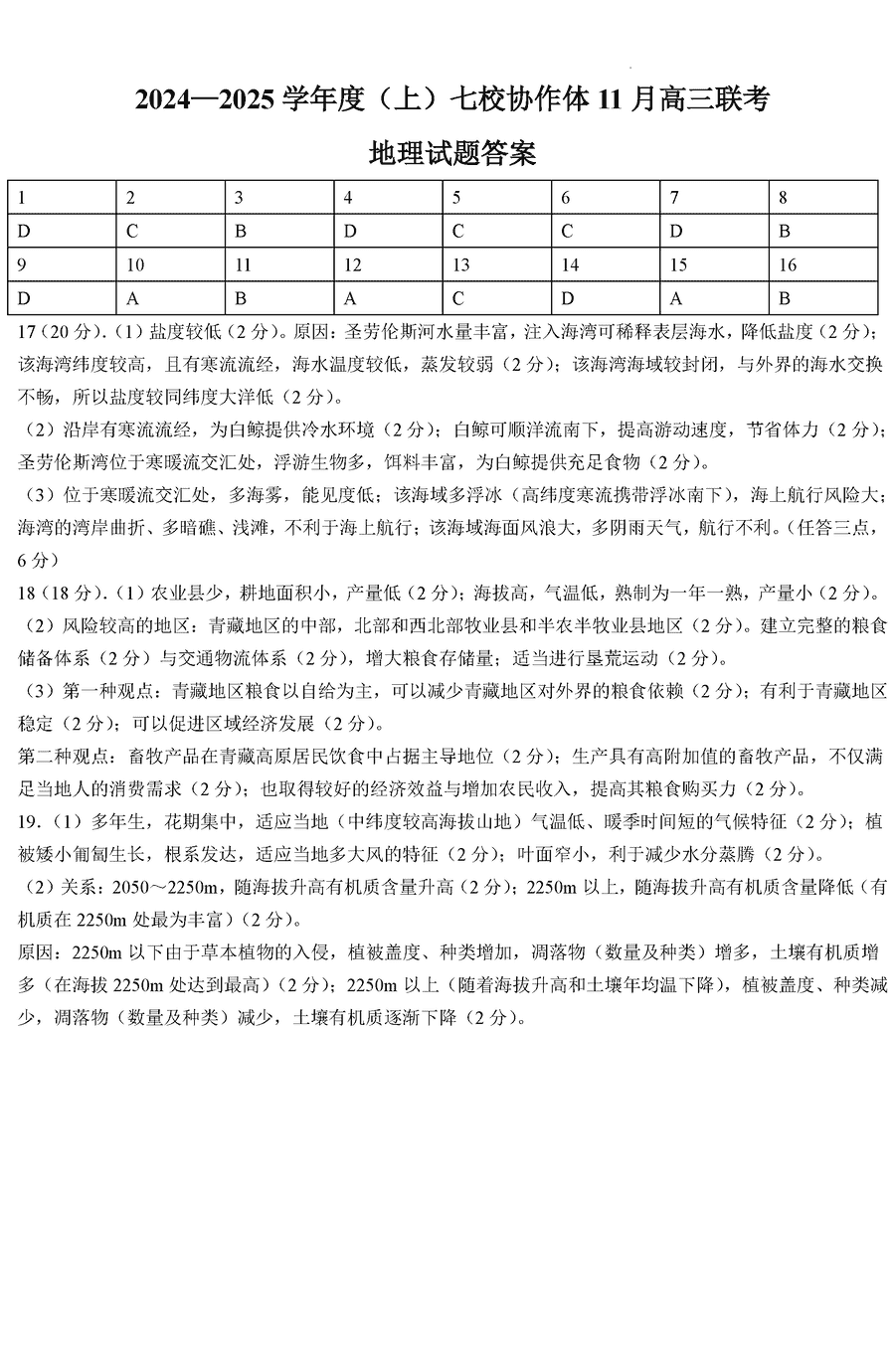 辽宁七校协作体2024-2025学年高三上学期11月期中联考地理考试已于近日开考,为方便考生考后及时查看考试情况,查漏补缺、弥补不足,本文整理了试题答案解析相关信息!
