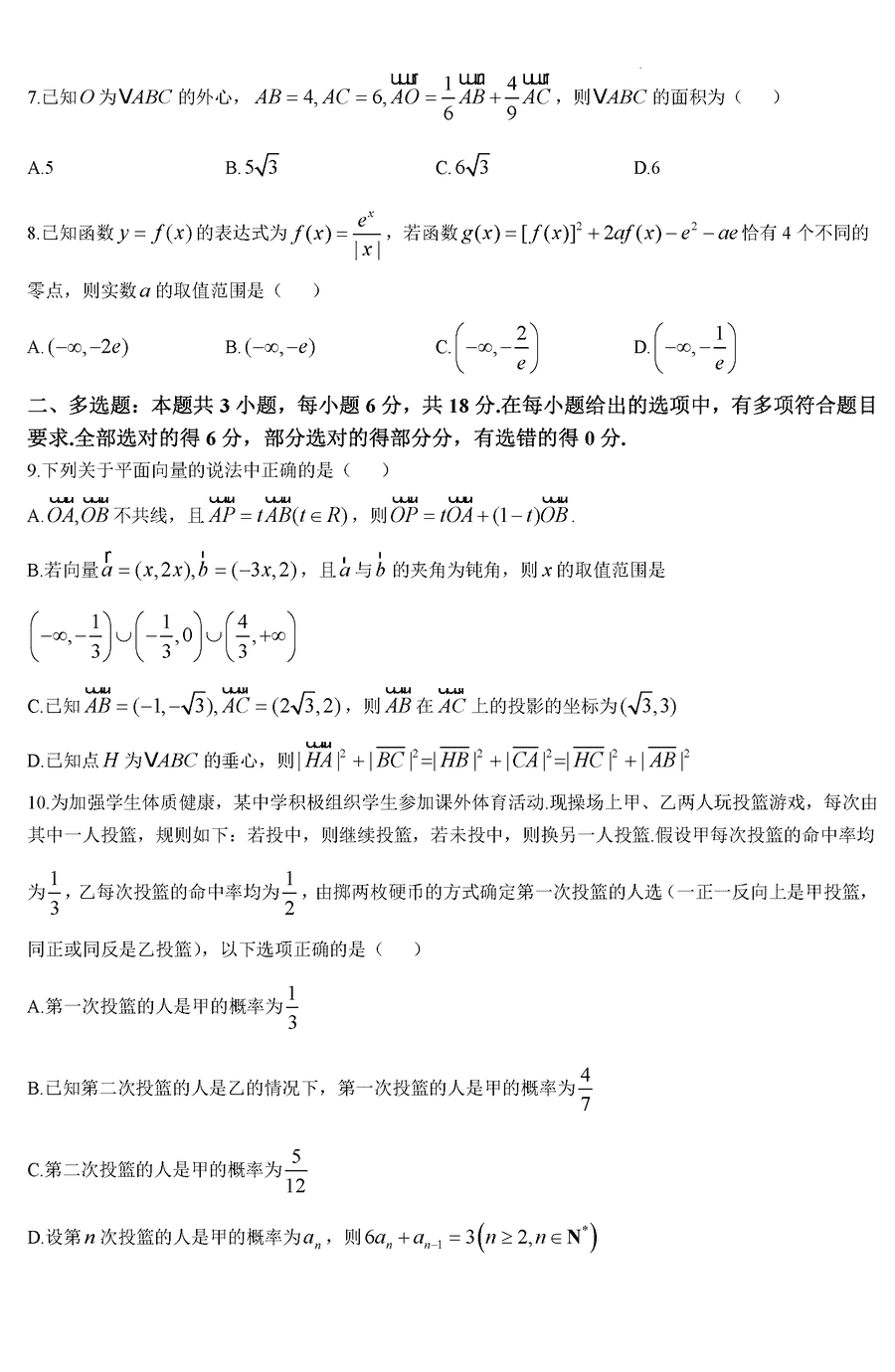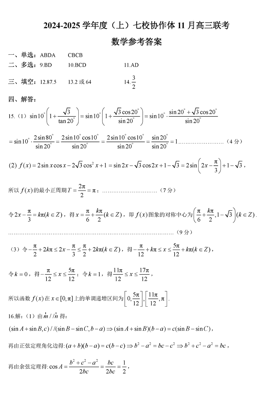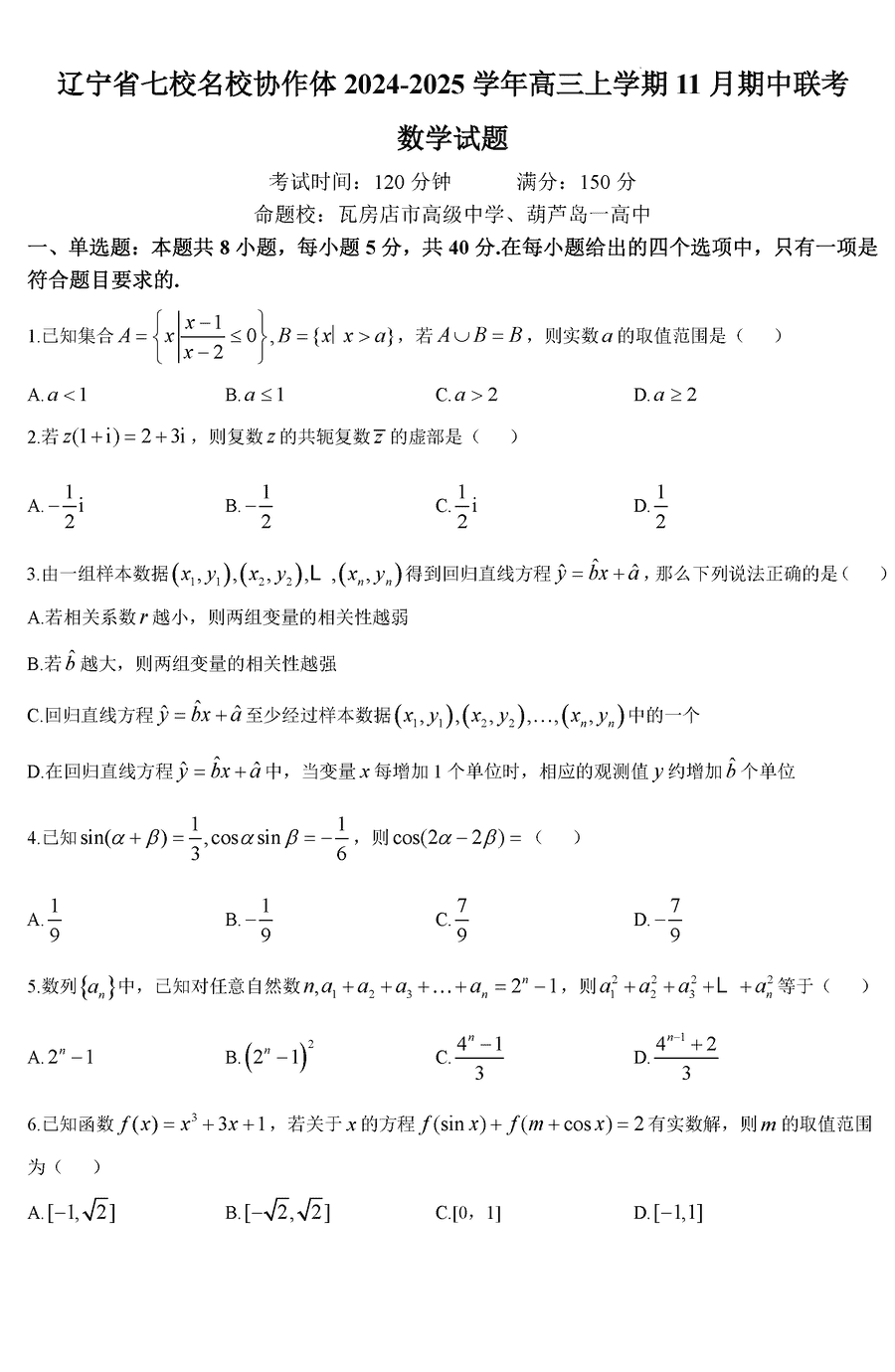 辽宁七校协作体2025届高三上学期11月期中数学试题及答案