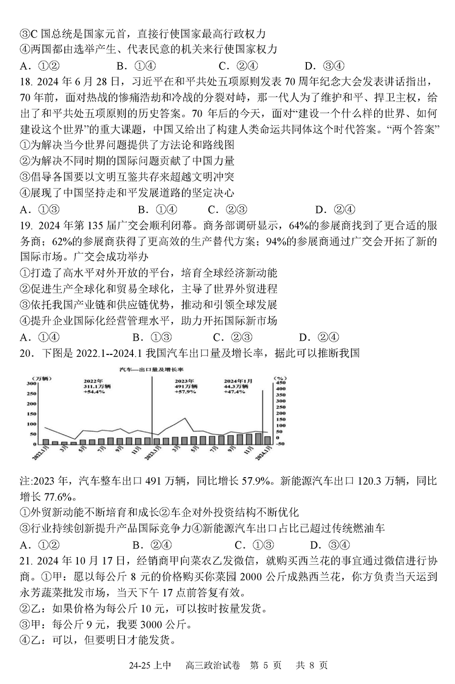 辽宁实验中学2024-2025学年高三上学期期中政治试题及答案
