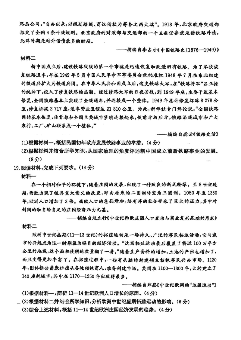 河北沧衡名校联盟2025届高三上学期11月期中历史试题及答案
