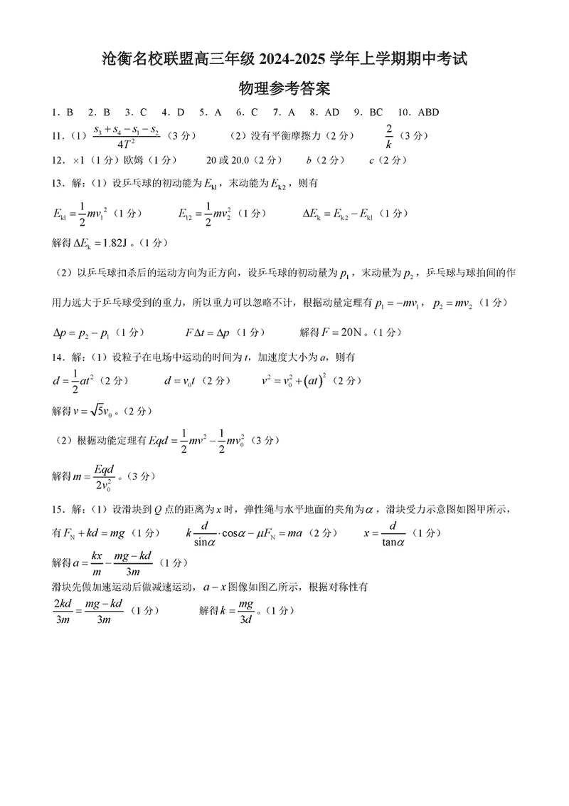 河北沧衡名校联盟2025届高三上学期11月期中物理考试已于近日开考,为方便考生考后及时查看考试情况,查漏补缺、弥补不足,本文整理了试题答案解析相关信息!
