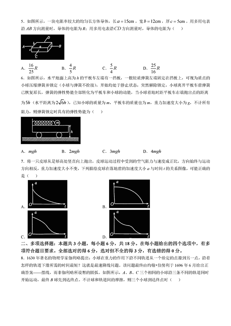 河北沧衡名校联盟2025届高三上学期11月期中物理试题及答案