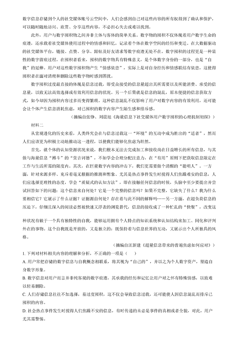 佛山顺德区2024学年高三教学质检(一)语文试题及答案